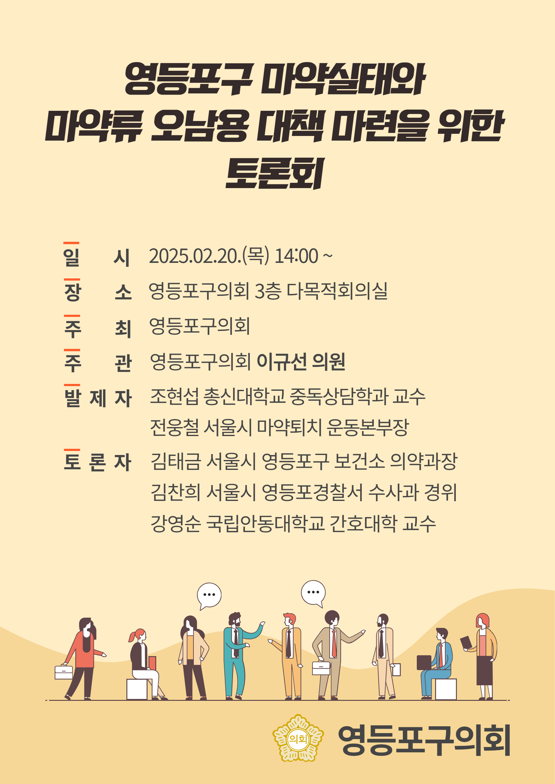 | 영등포구의회 토론회 개최 안내(영등포구 마약실태와 마약류 오남용 대책 마련을 위한 토론회) | |||||