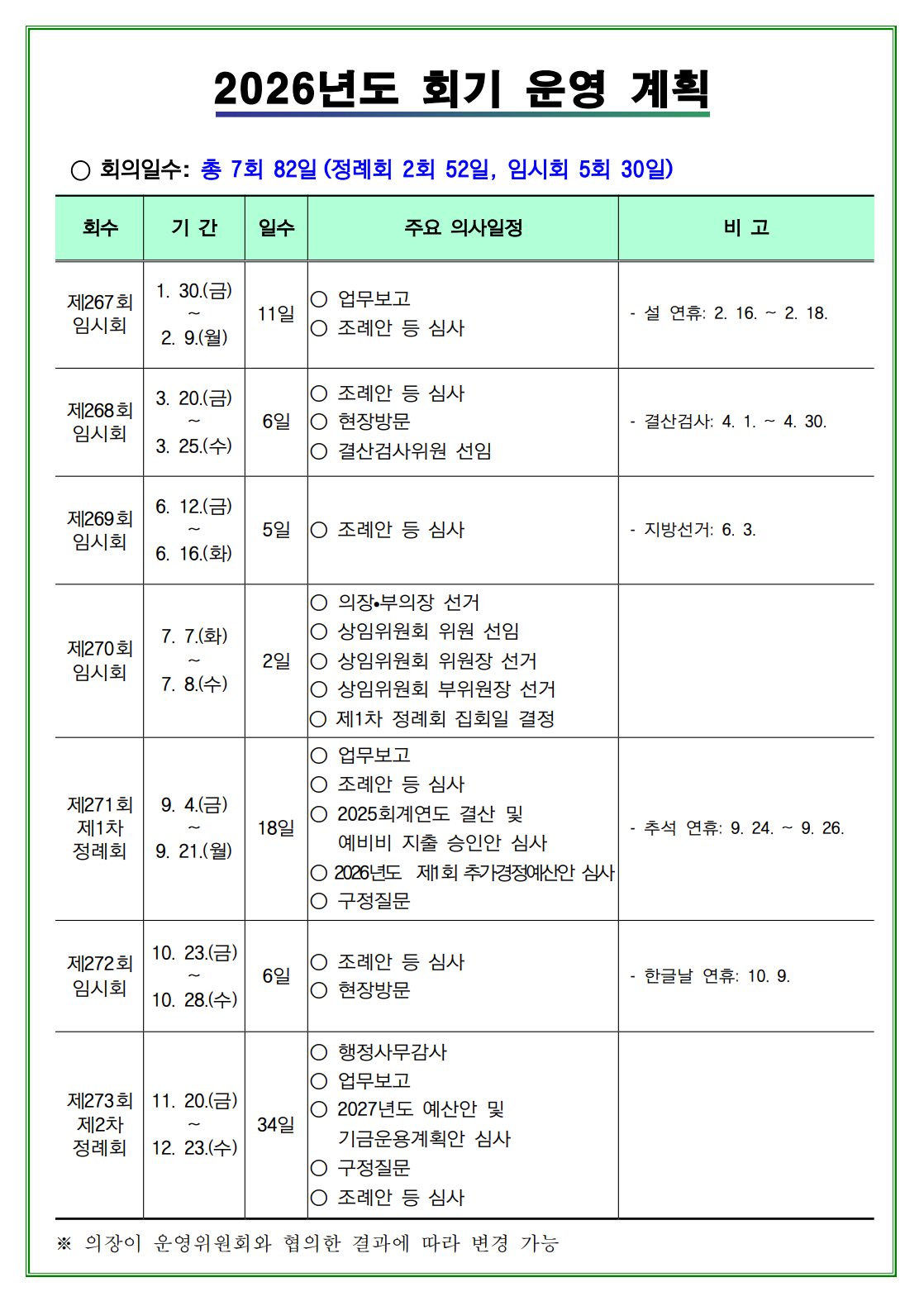 연간회기일정